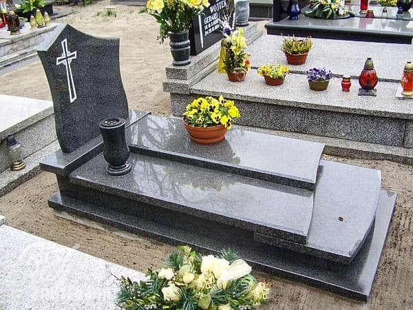 В процессе изготовления памятников гранитный блок распиливают, придают форму и полируют.
