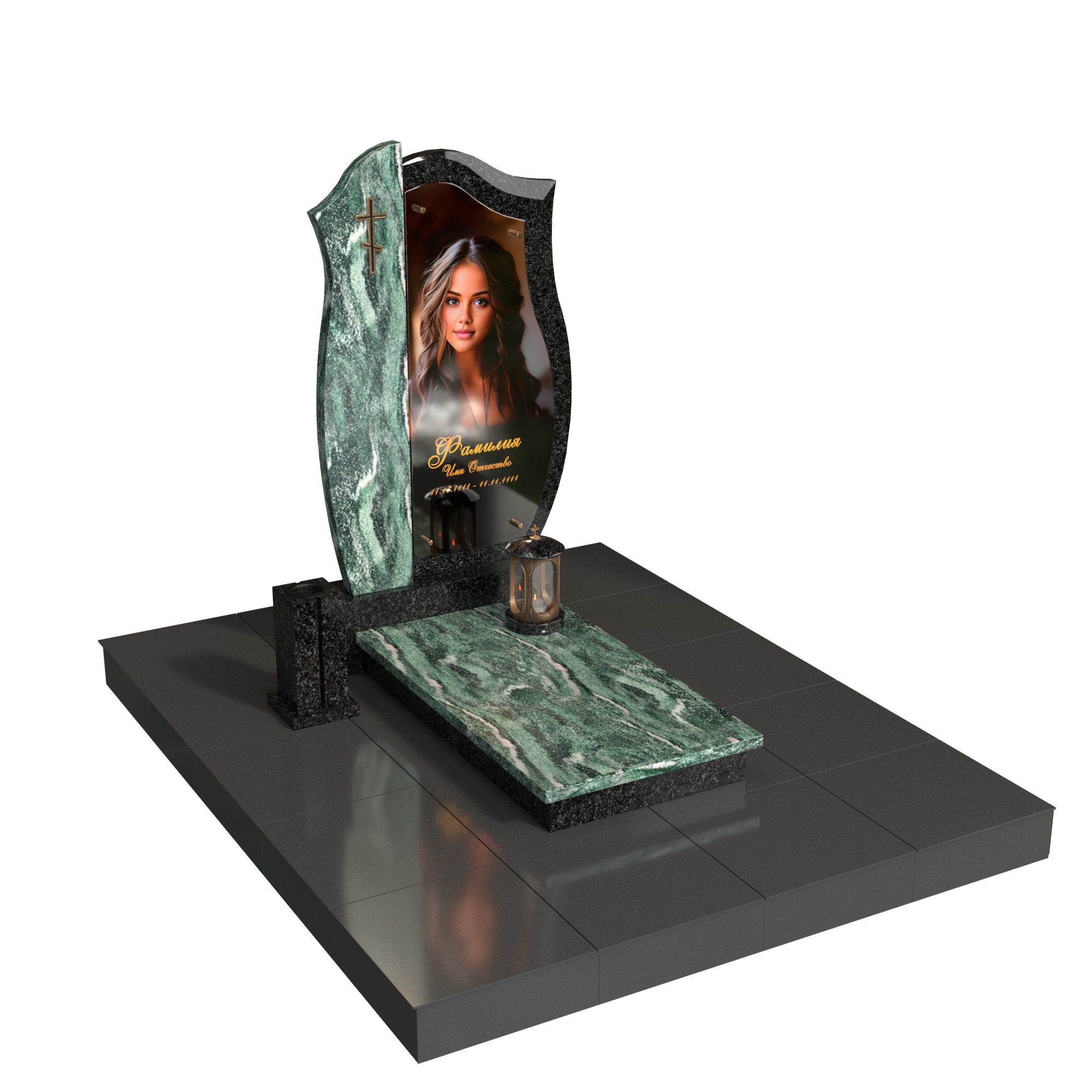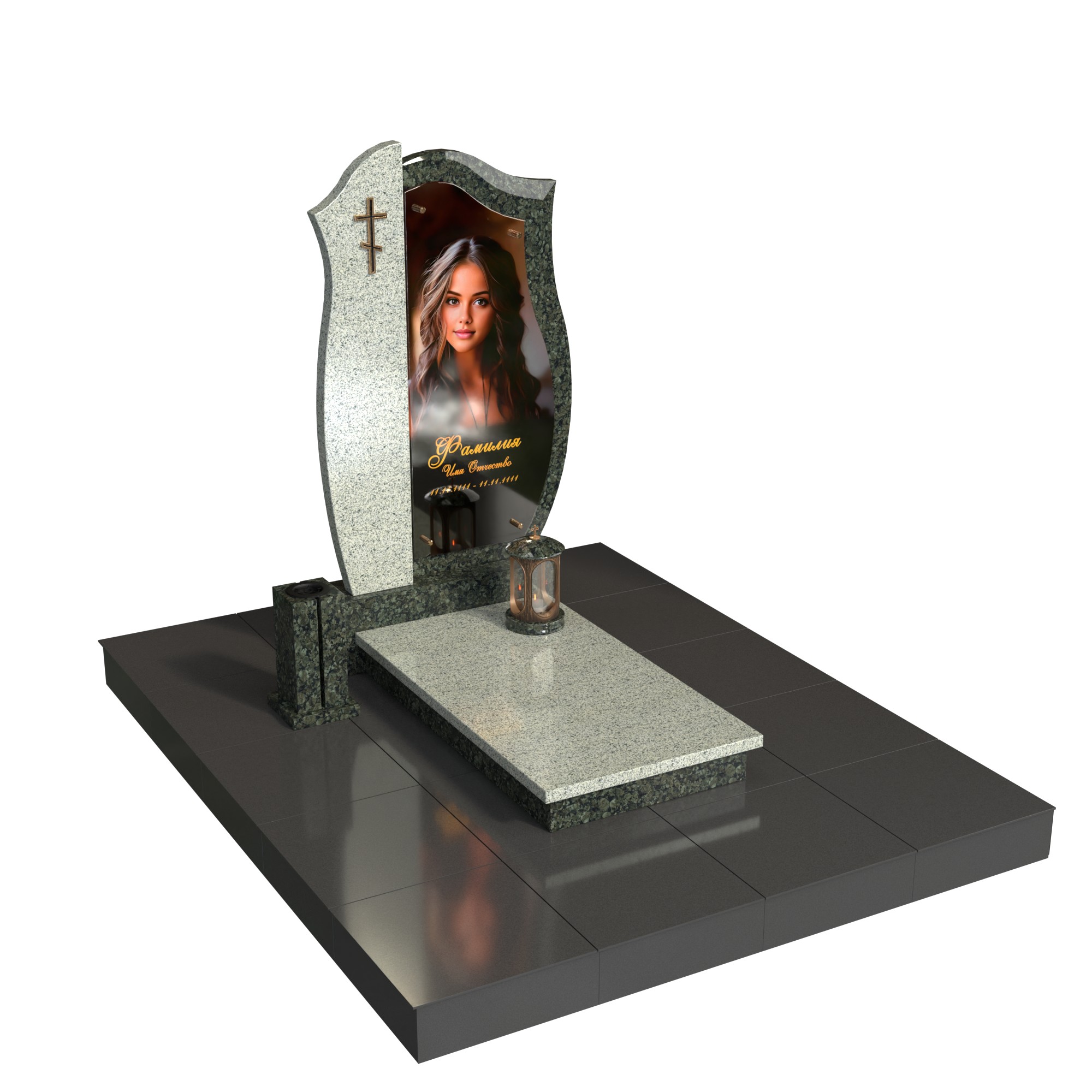 Возможна полная персонализация: шрифт и макет надписей (Ф. И. О., даты, эпитафия), тип и размер портрета (на камне/стекле/керамике), габариты и форма цветника, выбор аксессуаров (лампада, ваза и др.).