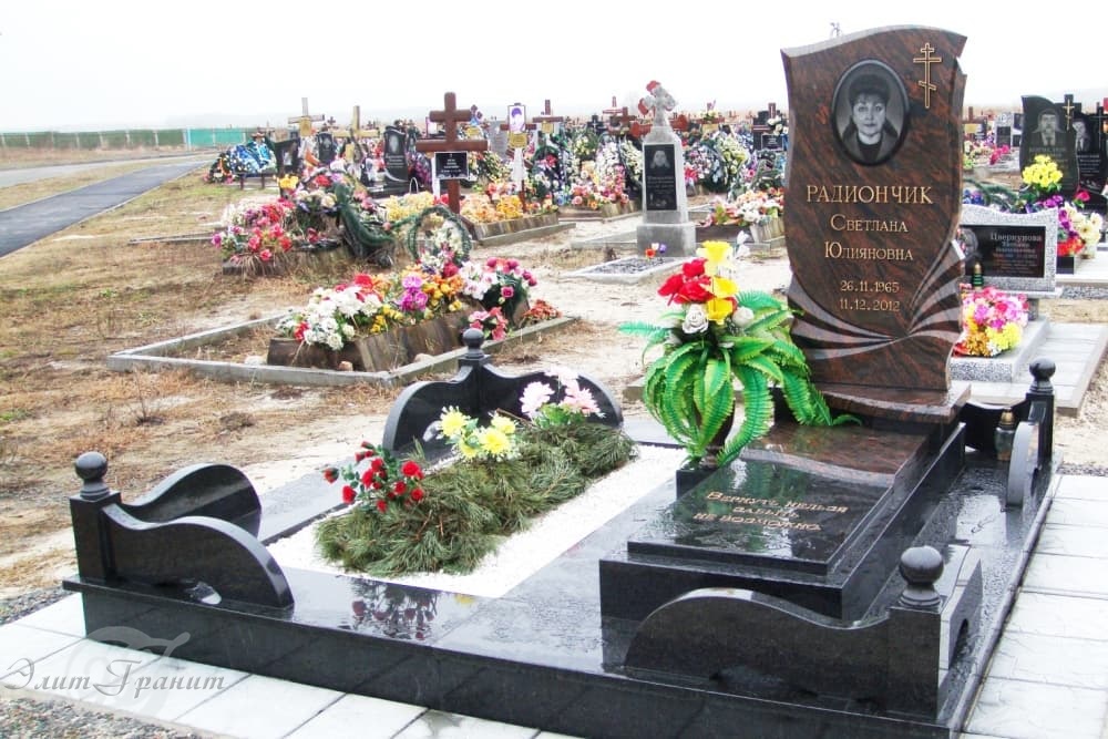 Своеобразие мемориальных комплексов из финского гранита Aurora удачно можно оттенить бронзовыми аксессуарами Caggiati. Утонченный итальянский стиль как никогда лучше дополняет и подчеркивает текстуру гранита.