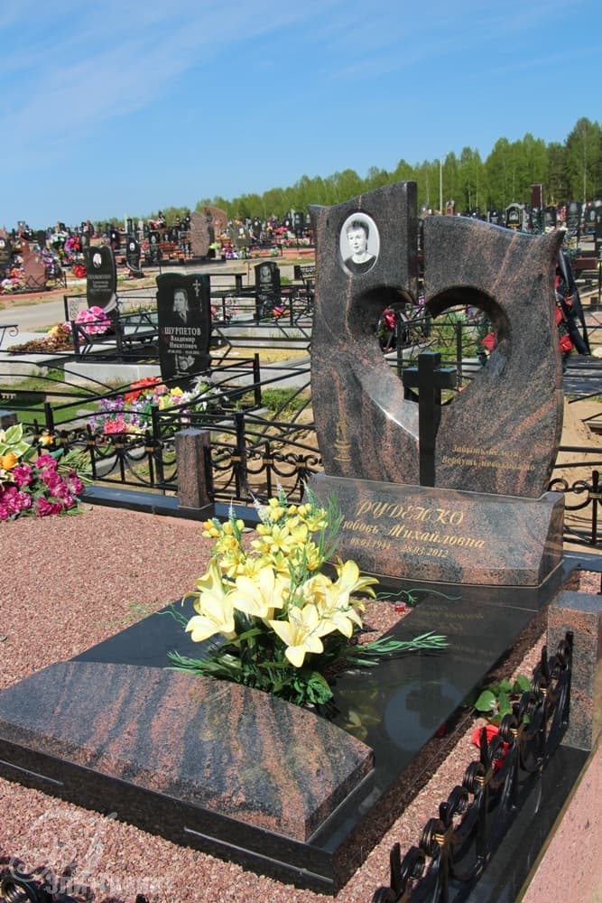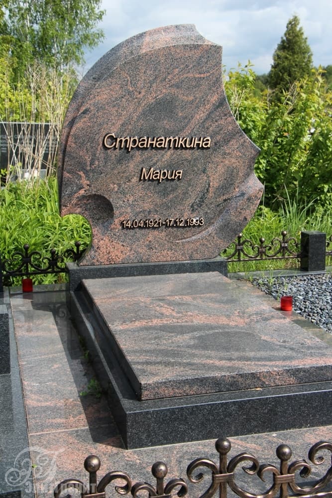Однако и более плавные и предсказуемые линии мемориальной стелы не подавляют текстуру гранита Aurora: красно-черные переливы создают особую торжественность памятника, подчеркивают монументальную сдержанность.